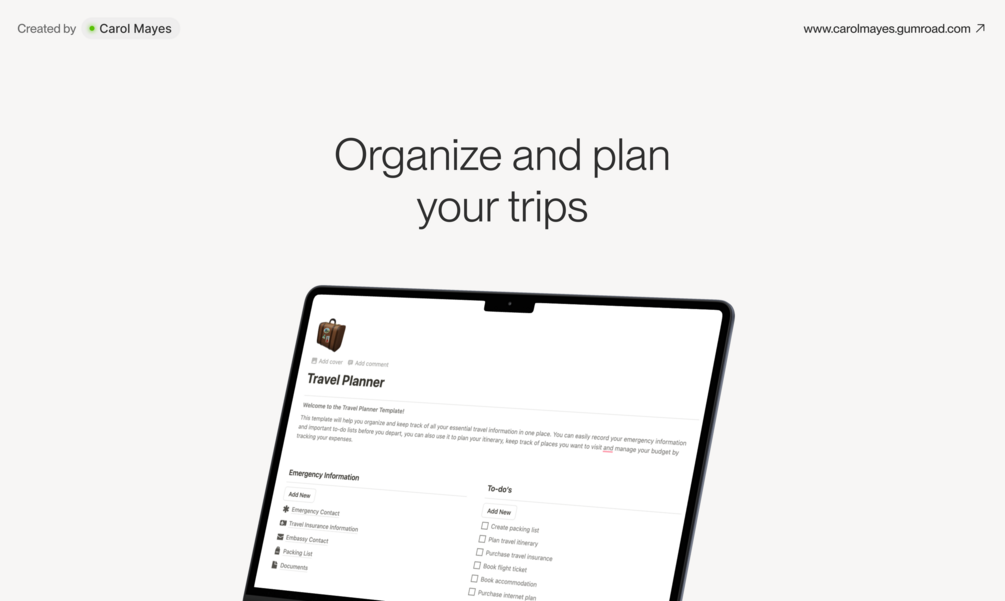 🚀So, what are you waiting for? Get the Travel Planner for Notion today and start planning your next adventure with ease!🚀